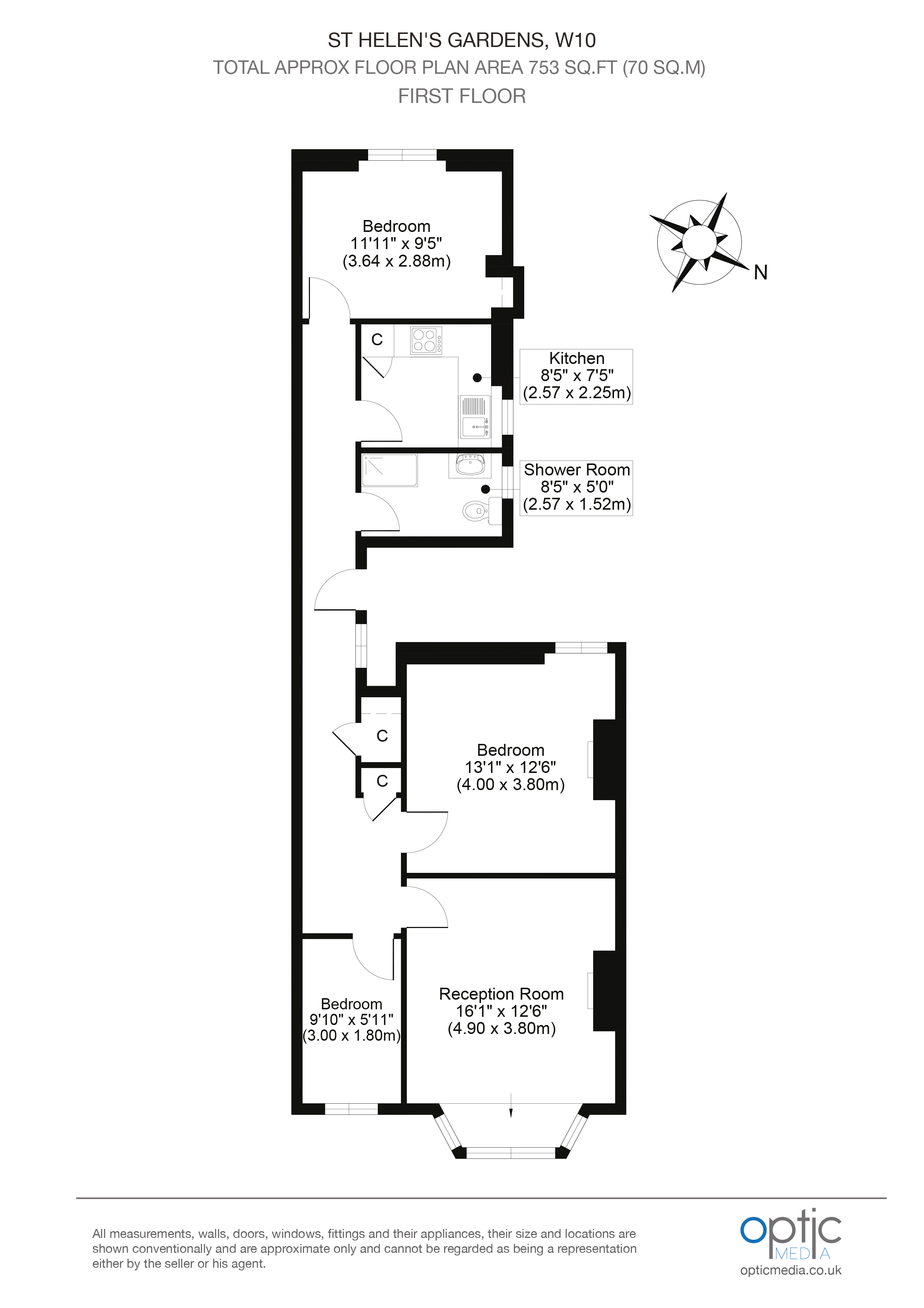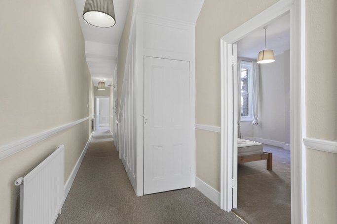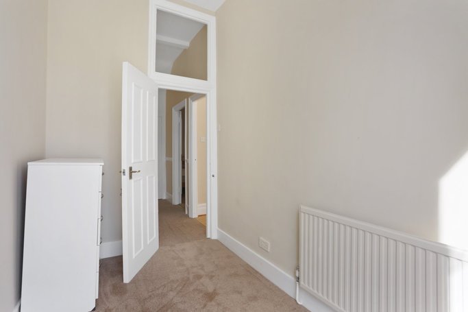 A spacious 3 bedroom apartment on the first floor. The property comprises of a reception room with a bay window, two double bedrooms, a smaller third bedroom/study, a shower room and a separate kitchen.