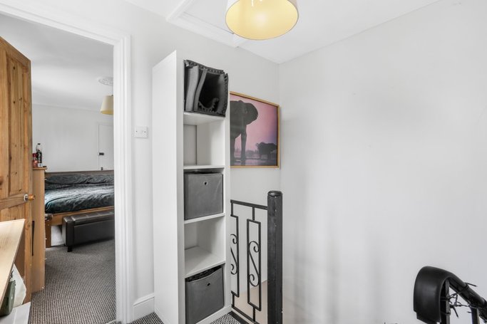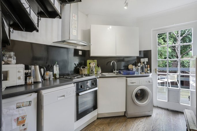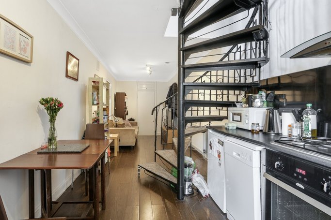 A unique, split-level one bedroom flat with a private garden. Comprising of an open-plan living and kitchen space on the first floor, and a double bedroom and bathroom on the second floor.