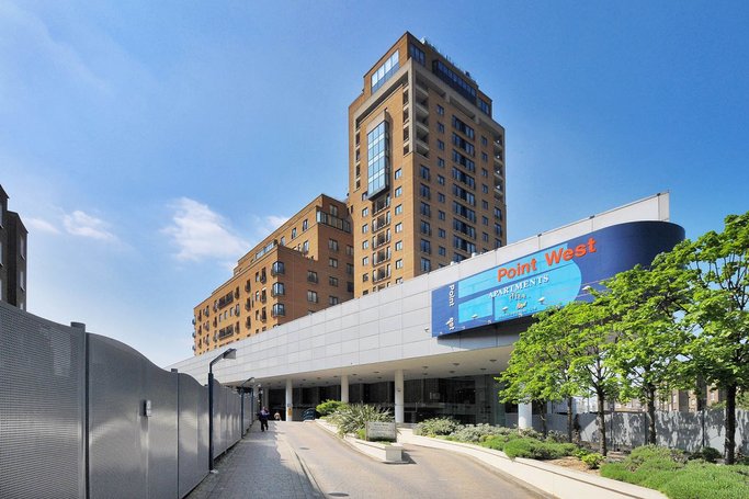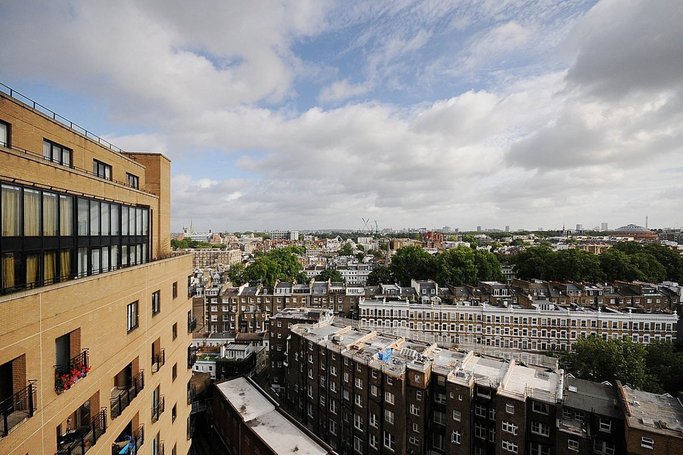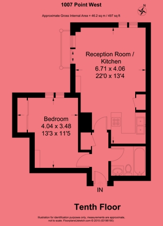 A modern furnished one bedroom apartment on the tenth floor of this popular portered building. Wooden floored reception with open plan kitchen. Double bedroom with fitted wardrobe.