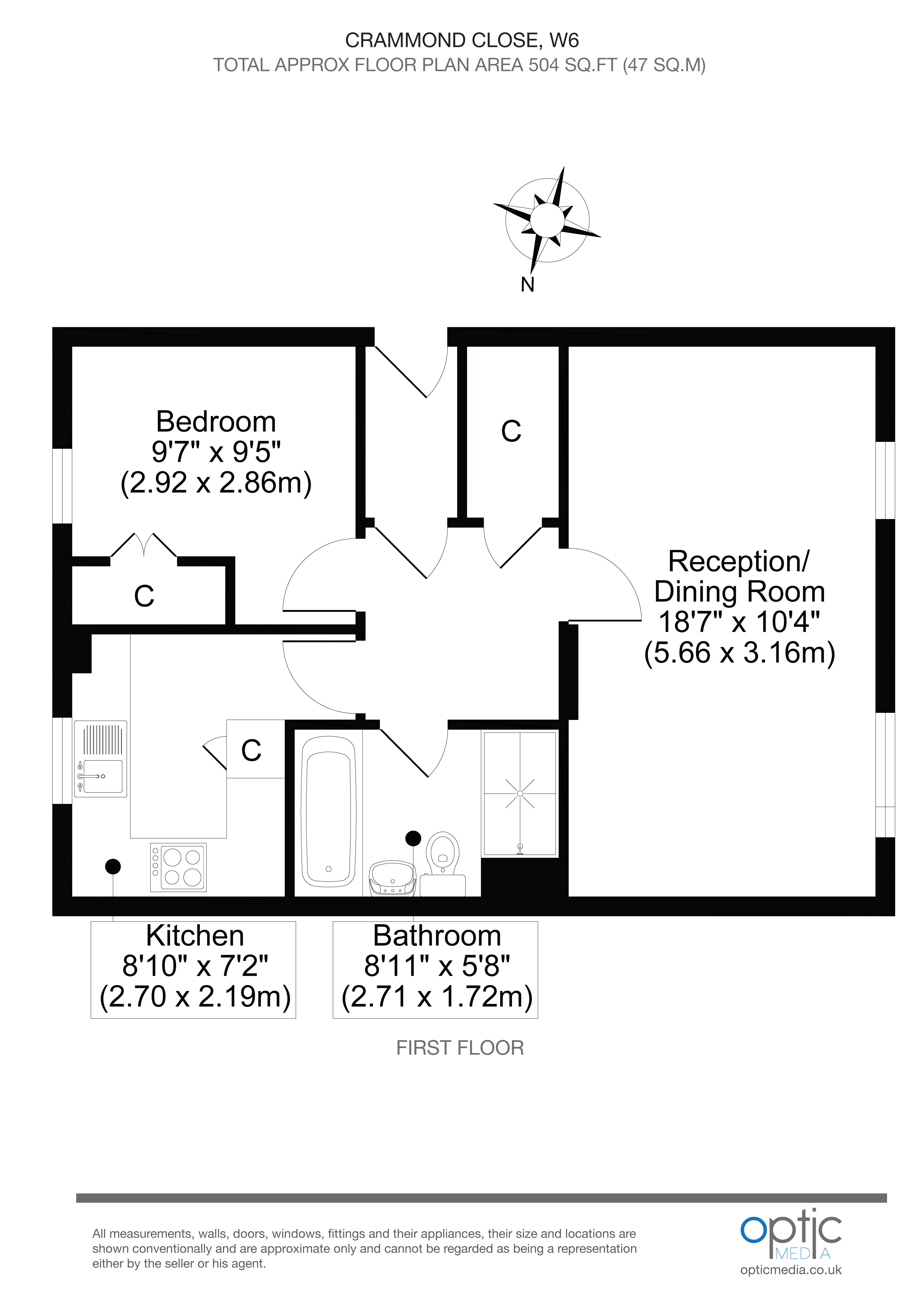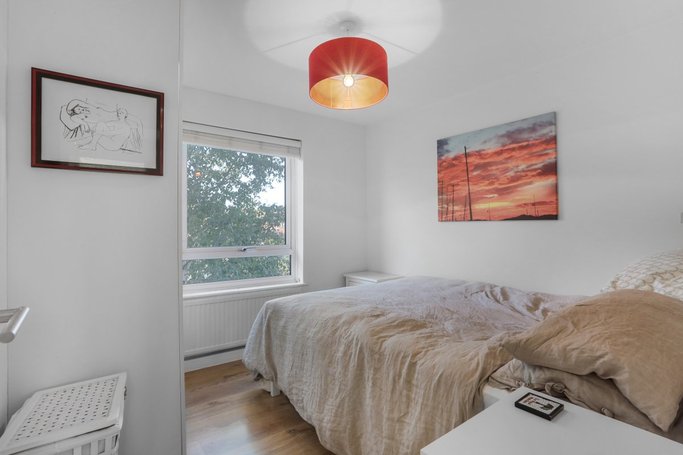 This spacious apartment, measuring 540sqft, is beautifuly presented and has wonderful views over the trees of the local park. The bathroom and kitchen have been recently updated and the property provides good storage.